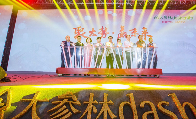 yp街机药业集团董事长刘景萍女士与大参林医药集团董事长柯云峰先生、中国医药商业协会执行会长付明仲女士等嘉宾共同开启了“聚大势•赢未来"大参林工商合作峰会的大幕。