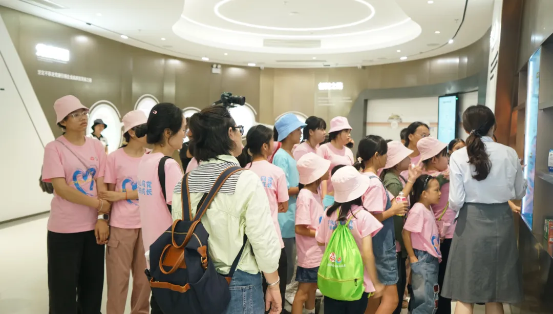 紧接着,孩子们来到了建党百年庆典红旗——070号红旗前。讲解员讲述了yp街机药业集团与庆典红旗的深厚渊源。孩子们听得津津有味,眼中闪烁着对党和国家的热爱与敬仰。